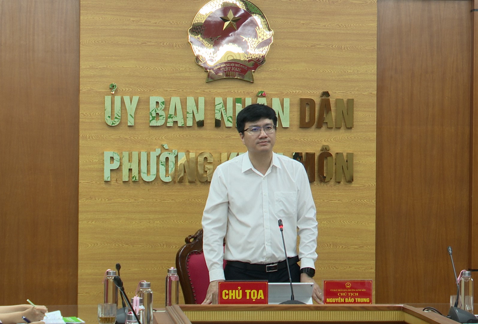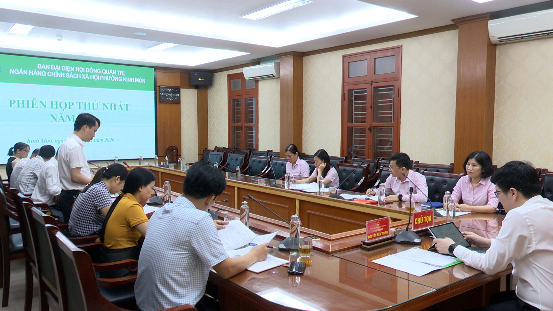 Sáng ngày 17/4/2026, Ban đại diện Hội đồng quản trị Ngân hàng Chính sách xã hội phường Kinh Môn họp phiên thứ Nhất. Đồng chí Nguyễn Bảo Trung, Phó Bí thư Đảng uỷ, Chủ tịch UBND phường chủ trì phiên họp; tham dự có Đồng chí Hoàng Công Tình, Phó Chủ tịch Thường trực UBND phường, Đại diện lãnh đạo các cơ quan, đơn vị: Công an phường, Văn phòng HĐND và UBND , phòng Kinh tế Hạ tầng và Đô thị phường, lãnh đạo, chuyên viên Ngân hàng Chính sách xã hội Kinh Môn; lãnh đạo Uỷ ban MTTQ Việt Nam phường và các tổ chức hội, đoàn thể.