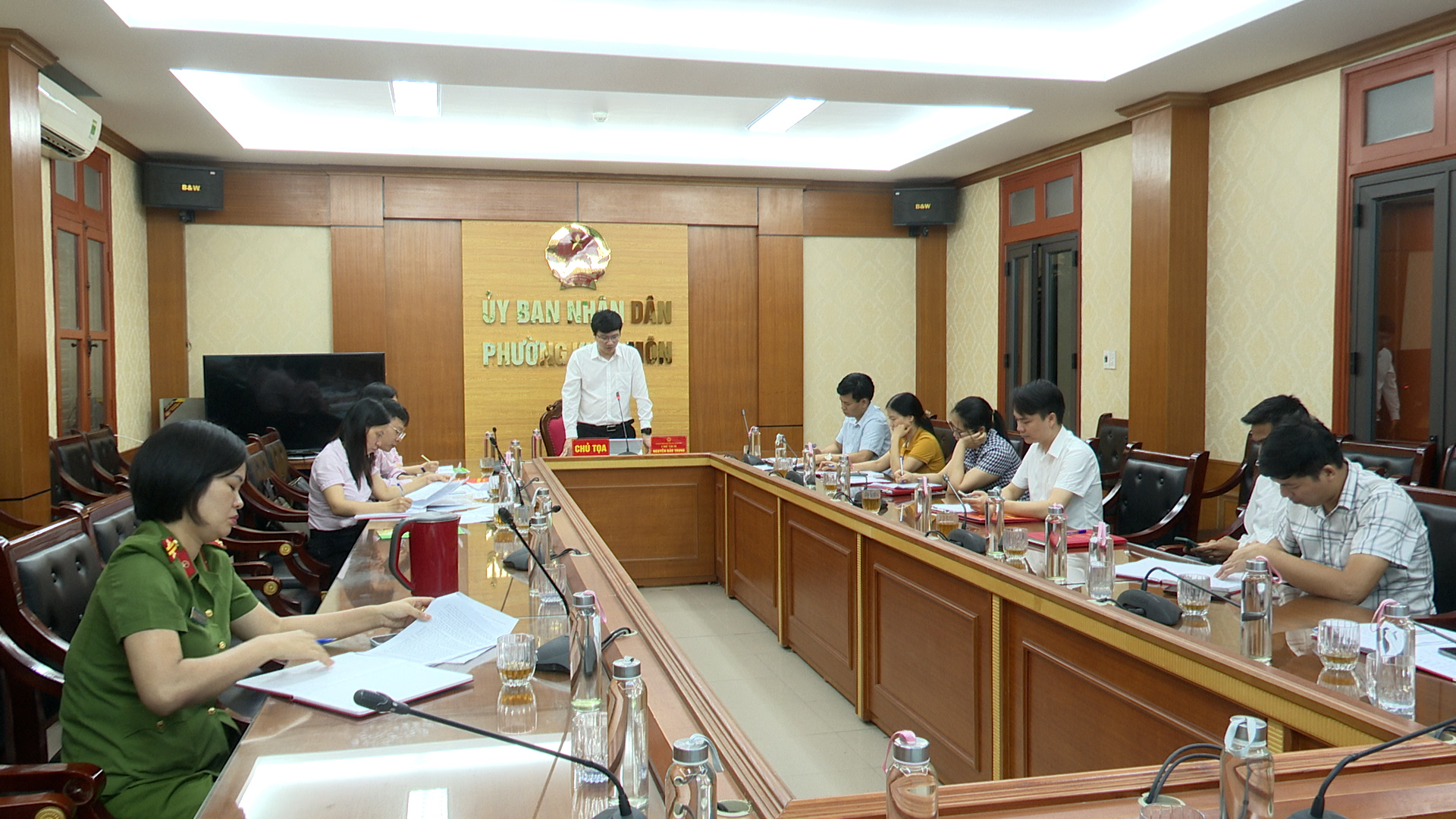 Đồng chí Nguyễn Bảo Trung, Phó Bí thư Đảng uỷ, Chủ tịch UBND phường, Trưởng Ban đại diện đề nghị các thành viên Ban đại diện Hội đồng quản trị Ngân hàng chính sách phường phát biểu kết luận phiên họp
