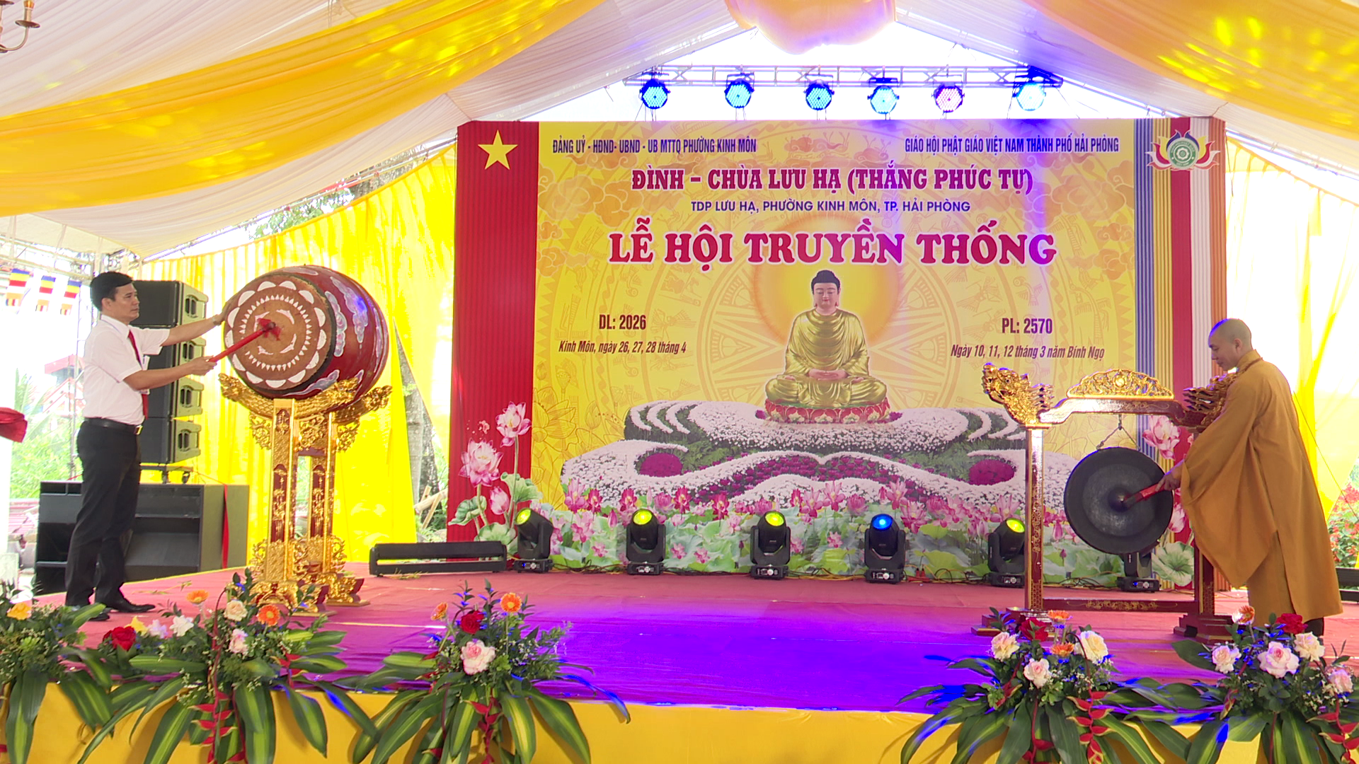 Sau phần tuyên bố khai mạc, các đồng chí lãnh đạo địa phương cùng Ban tổ chức đã thực hiện nghi thức đánh trống, thỉnh chiêng khai hội và dâng hương tại Đình – Chùa Lưu Hạ (Thắng Phúc Tự). Tiếng trống hội vang lên rộn rã, tiếng chiêng ngân vang linh thiêng chính thức mở đầu mùa lễ hội truyền thống năm 2026, thể hiện lòng thành kính tri ân các bậc tiền nhân, cầu mong quốc thái dân an, mưa thuận gió hòa, Nhân dân ấm no, hạnh phúc.